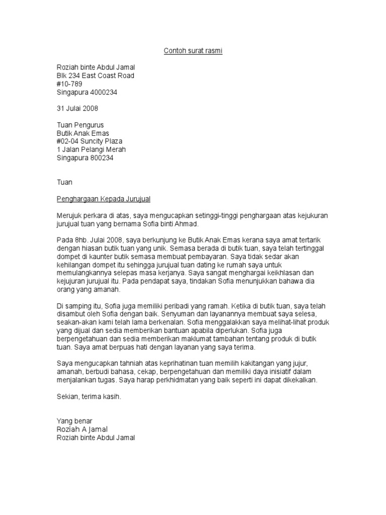 Contoh Surat Rasmi Penghargaan Pdf